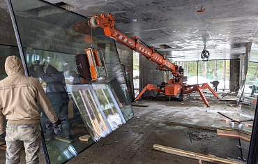 Мини-кран SPX527 и стекломанипулятор MR 800.4 помогли с заменой стеклопакетов в одном из современных загородных комплексов.