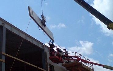 Наши объекты - Вертикальный монтаж стеновых сэндвич-панелей до 12 м