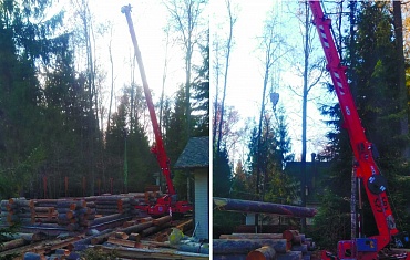 Монтаж цилиндрического бруса при строительстве загородного дома в посёлке Армейское Михайлово-Ярцевском поселении