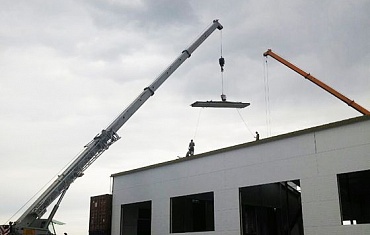 Монтаж сэндвич-панелей. Строительство футбольного манежа в городе Тимашевск (Краснодарский край)