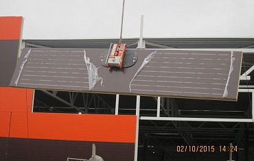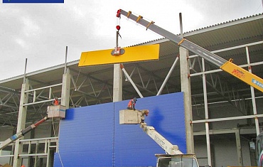 Гипермаркет "О`Кей", г. Челябинск. Горизонтальный монтаж сэндвич-панелей 9 метров, 340 кг.