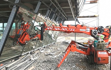 Наши объекты - Установка фасадного остекления с помощью мини-крана SPX 527 и вакуумного захвата ARLIFTER GS-350