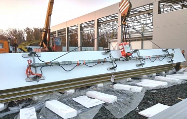 Вертикальный монтаж стеновых панелей в рамках проекта по реконструкции концерна «Камаз-Центр» вакуумным захватом ARLIFTER SP-4 в Ростове-на-Дону
