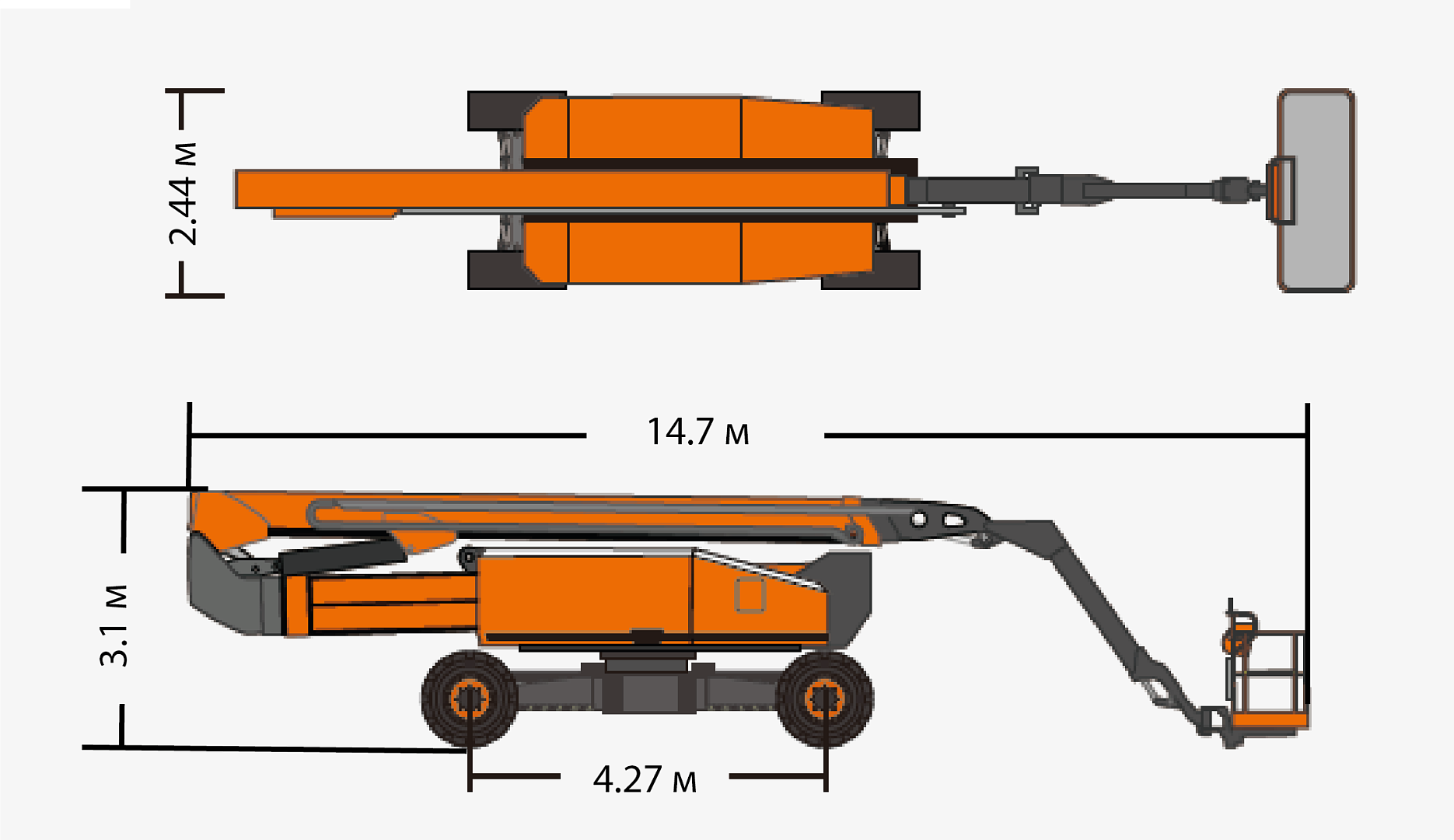 14.7 м х 2.44 м x 3.10м